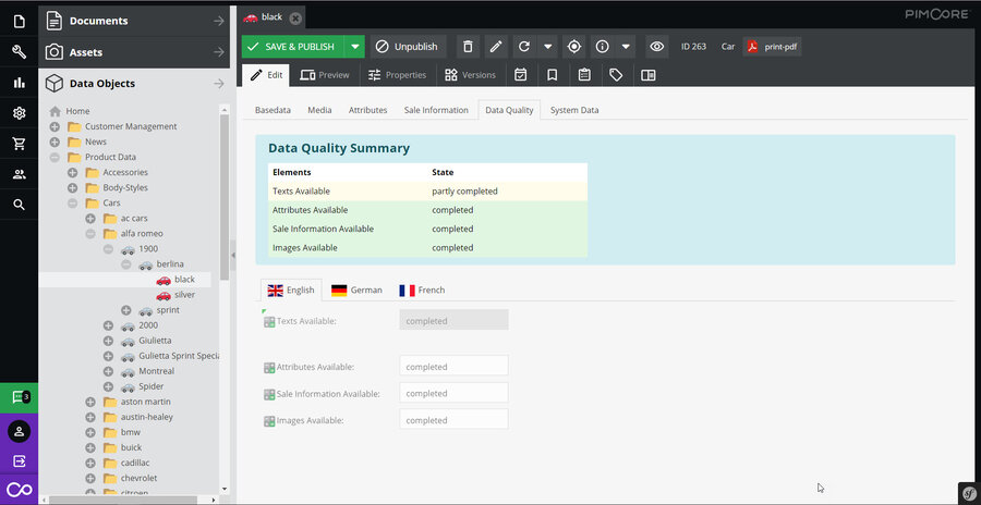 In car objects, we have data quality reports included. Just open a car object and switch to the data quality tab.